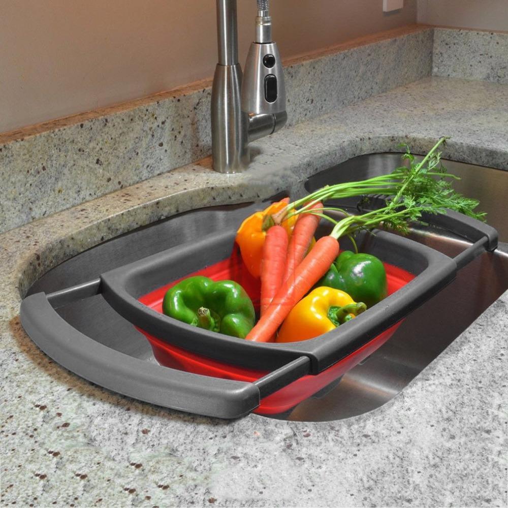 Drainer  vos fruits, légumes et tous les aliments , C'est très pratique et facile , Il est pliable et extensible. Peu importe la taille de votre évier, ce produit étonnant peut couvrir jusqu'à 26 pouces de large. C'est certainement votre nouvel ami lorsque vous tendez des pâtes, des fruits, des légumes et toute sorte de nourriture.