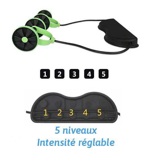 Il fonctionne comme un équipement de gym et possède deux roues avec un guidon fixé de chaque côté pour vous donner une meilleure prise pendant votre entraînement.