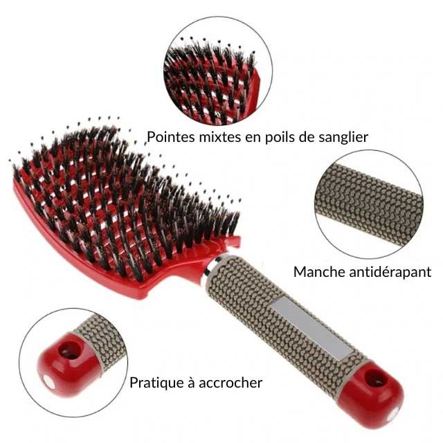 Améliorez la santé de votre chevelure avec notre brosse BROSLY™ qui présente des poils naturels de sanglier qui sont composé de kératine comme vos cheveux et qui permettent de respecter leur nature tout en apportant de la brillance.