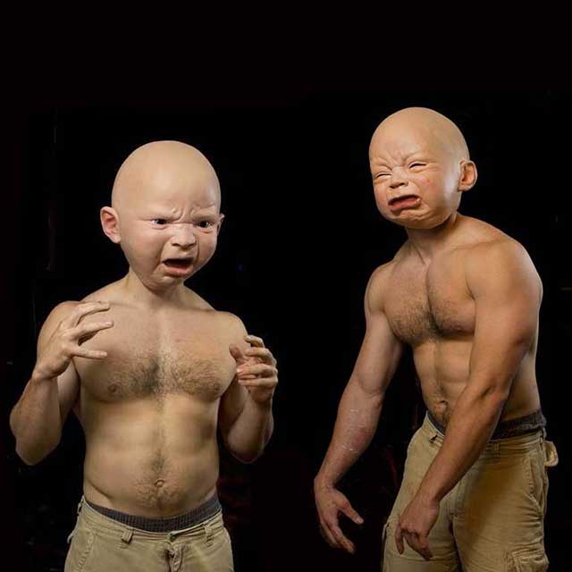 Fabriqué en silicone durable avec les excellentes expressions du visage peintes et moulées par des experts en fabrication de masques. Si vous regardez de près, vous pouvez même voir les détails du visage du bébé. Les idées de costume peuvent être infinies avec ce masque. Il est idéal pour les farces, pour effrayer la famille et les amis et pour bien rire.