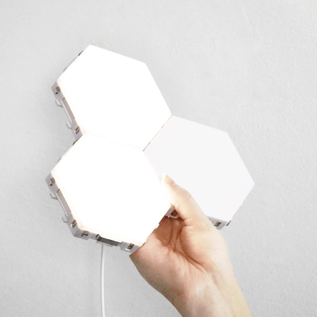 Côté design: ces petits hexagones lumineux s’assemblent les uns aux autres pour créer des alvéoles qui rappellent les nids des abeilles. Une particularité très intelligente qui permet de créer des surfaces plus ou moins grandes dont vous pourrez allumer la partie qui vous intéresse.